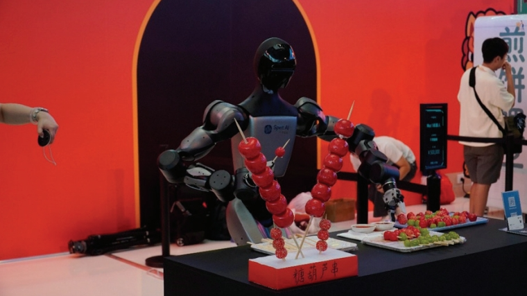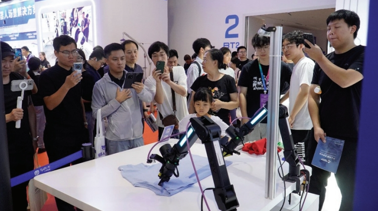 市集上,机器人“小二”为顾客穿糖葫芦;格斗赛场,两个人形机器人进行搏击比赛;抖直、平铺、折叠,叠衣服机器人帮助人类解放双手;摩肩接踵的人流中,一个转身就可能与一只机械狗或是机器人擦肩而过……这是记者在2025世界机器人大会上看到的一幕幕场景。