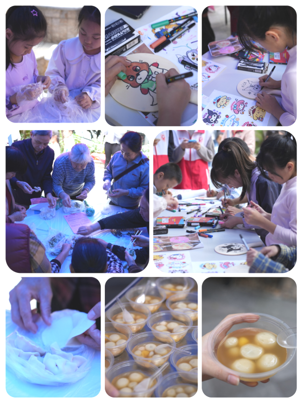 活动现场节日气氛浓厚,欢声笑语不断。在“指尖上的冬至”区域,许多家庭围坐一起包饺子、汤圆、孩子们绘制创意乒乓球拍,其乐融融。一旁的“平安知识闯关”和仿真毒品模型展示区,则吸引了不少居民特别是青少年驻足观看、参与问答,在互动游戏中学习识别毒品、防范诈骗的知识。热气腾腾的汤圆派送点前,居民们有序领取,共享冬日温暖。整个嘉年华如同一场热闹的社区家庭聚会,将团圆温情与安全守护紧密连接。