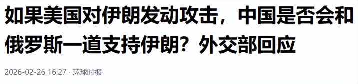 终于,2月26日中国外交部例行记者会上,有记者直接抛出灵魂拷问:中方是否会和俄罗斯一起支持伊朗?